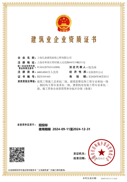 歡迎光臨 上海億唐建筑裝飾工程有限公司 官方網(wǎng)站!榮獲國(guó)家裝飾工程施工一級(jí)資質(zhì),國(guó)家裝飾工程設(shè)計(jì)乙級(jí)資質(zhì)。